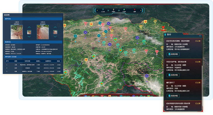 多维度数据分析、指挥调度、全程监管、预警提醒建设四端协调大屏端实现实时调度、数据决策,电脑端实现事情预警研判处置,群众手机端提供互动服务,村屏端提供信息公开、展示服务。