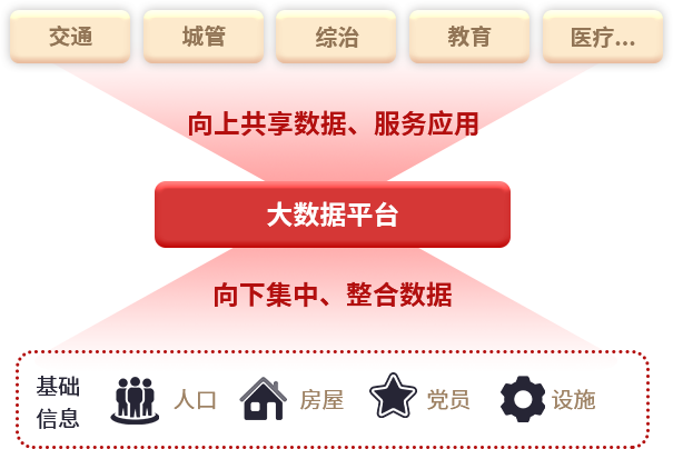 建设大数据资源中心,打破数据孤岛,通过数据集成、治理、服务、共享等,形成可为基层应用场景使用的高质量、标准化数据,为基层应用数智化赋能增效,减轻基层工作人员压力和负担。